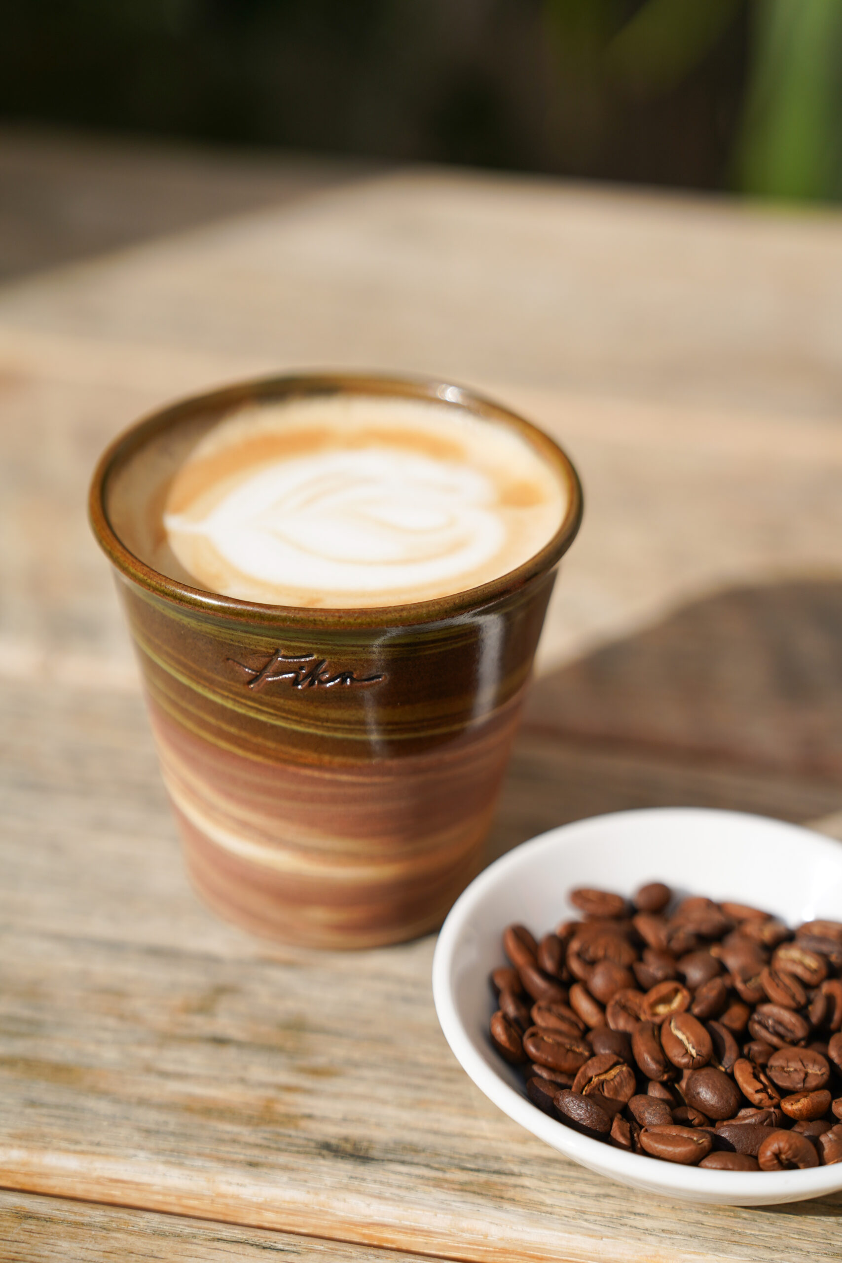 Une tasse en céramique, unique et tournée avec soin par Anna Lindell dans son atelier de Rosendals Krukmakeri en Suède. En terre mêlée, elle est émaillée de vert. Elle réunit à elle-seule la gamme chromatique chère au FIKA : le rouge emblématique de Falun et le vert profond des forêts. Chaque tasse est estampé du logo FIKA.
